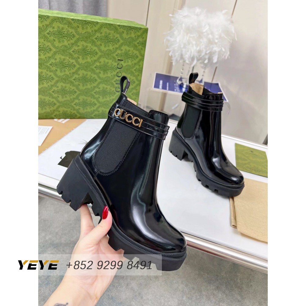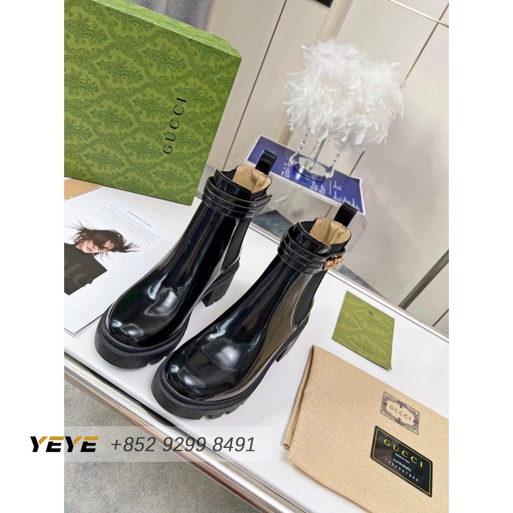 Gucci GG Ankle Boot With Buckles Black Leather 35-41