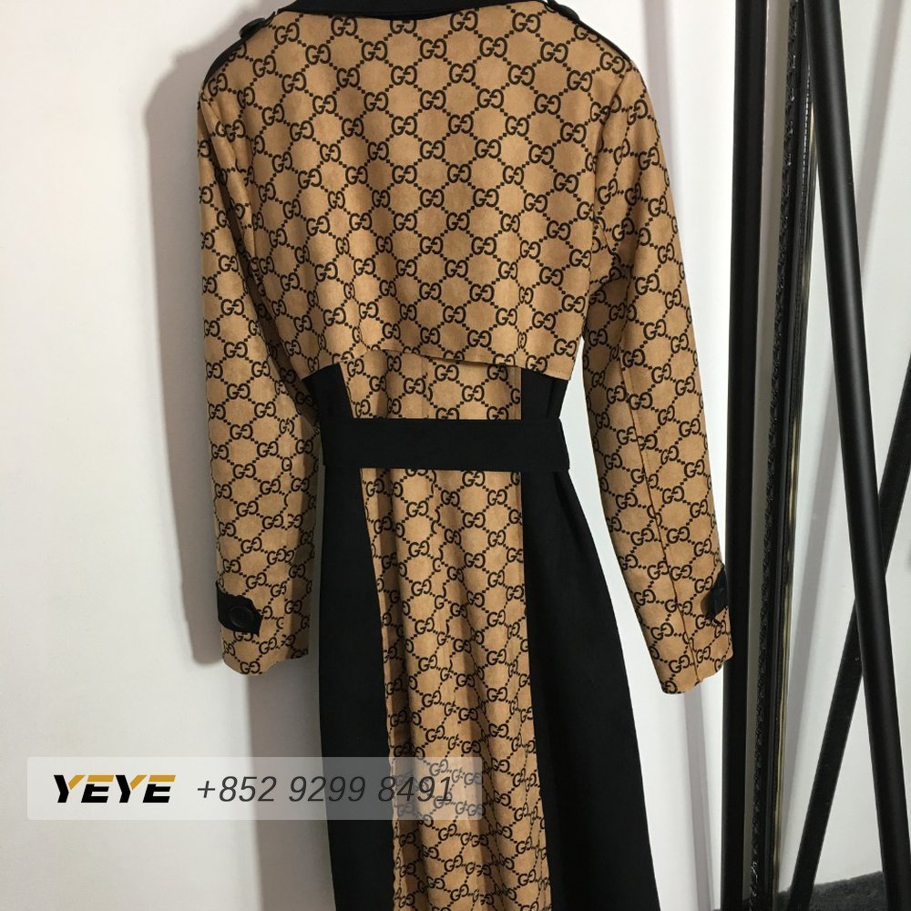 Gucci G Jacquard Letter Leather-Bound Mid-Length Trench Coat