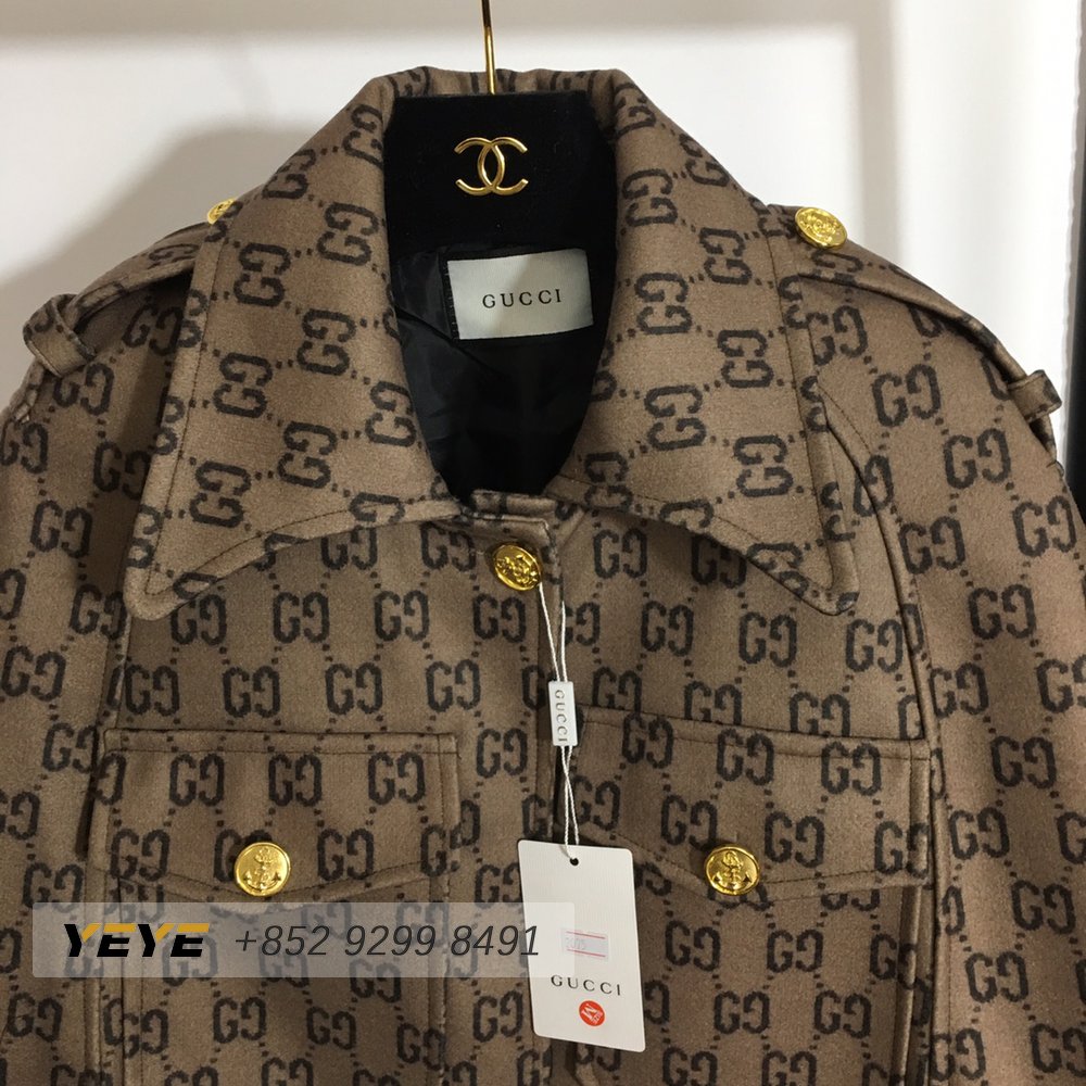 Gucci G Jacquard Letter Leather-Bound Mid-Length Trench Coat