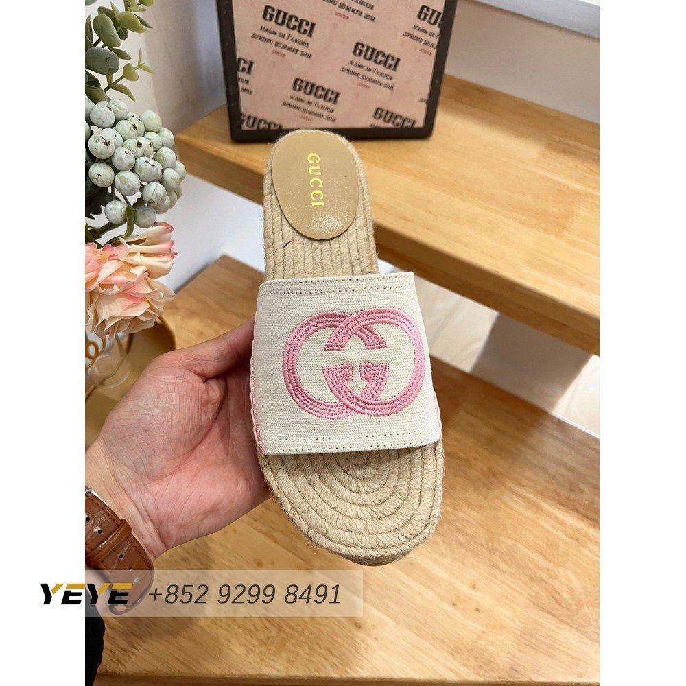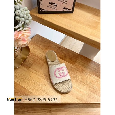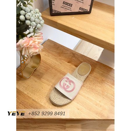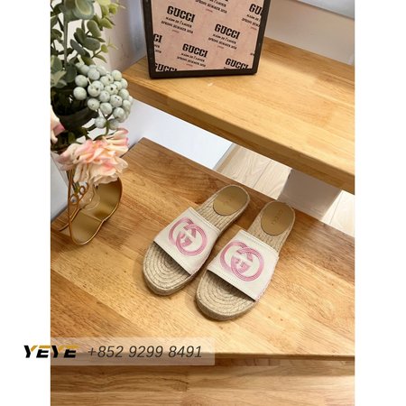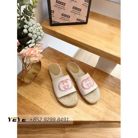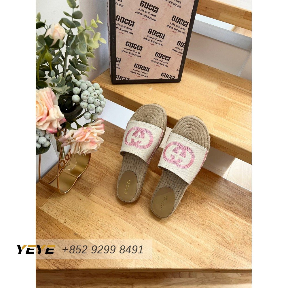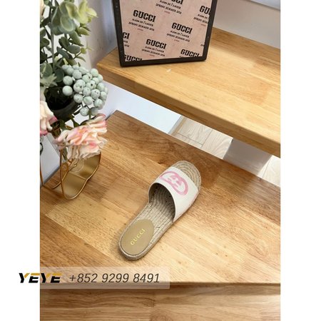 Gucci Espadrille Slide With Interlocking G White/Pink 35-41