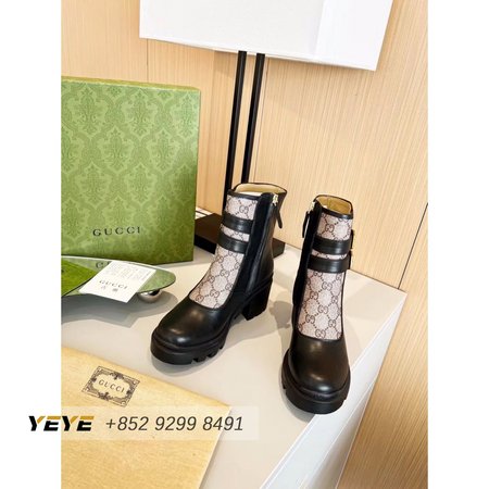 Gucci GG Ankle Boot With Buckles Black Leather 35-41