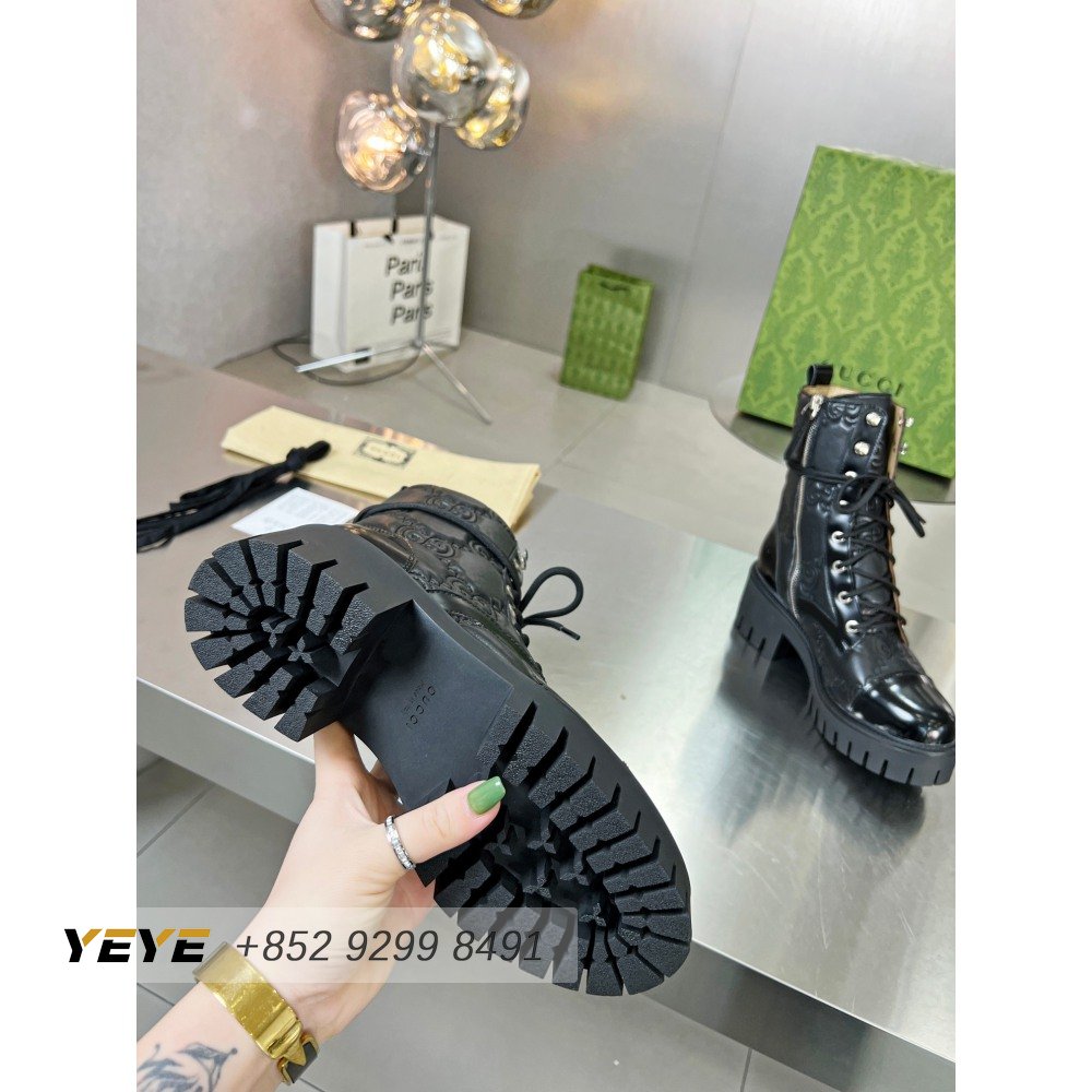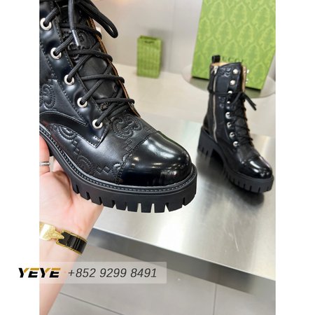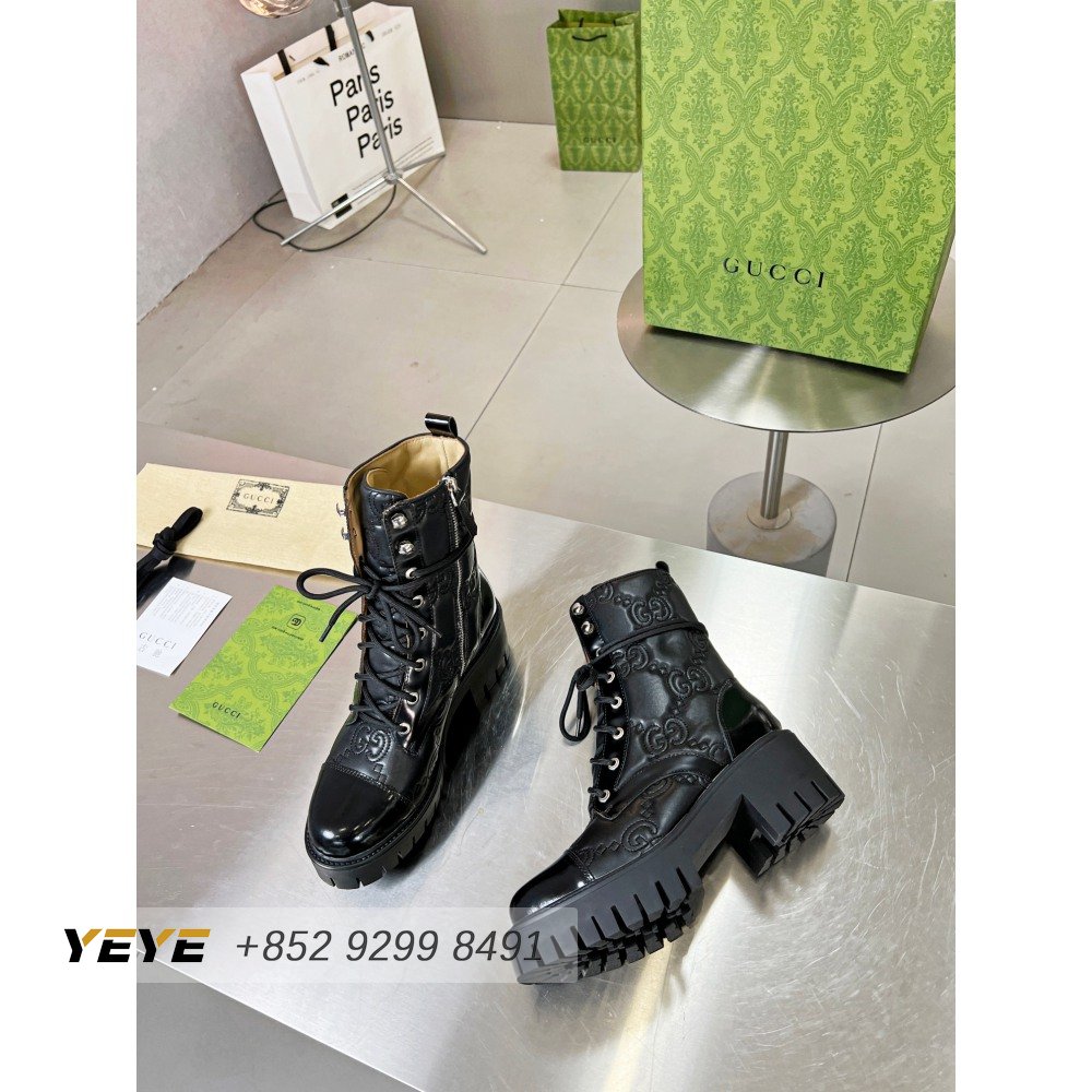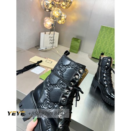 Gucci GG Matelasse Lace-Up Boot Black Leather 35-42