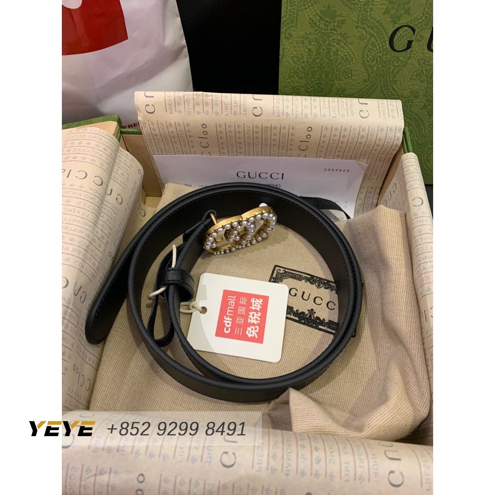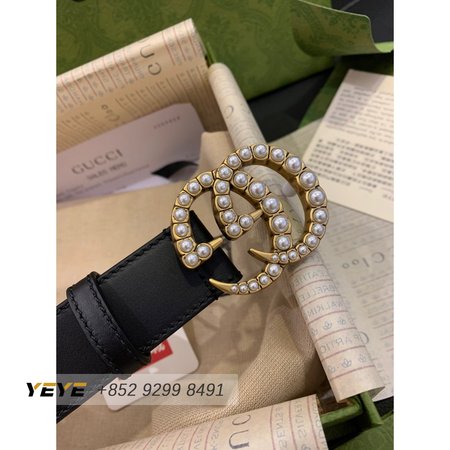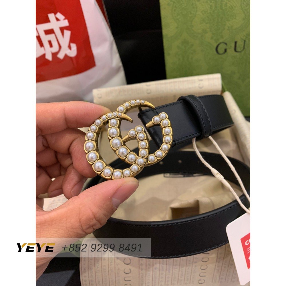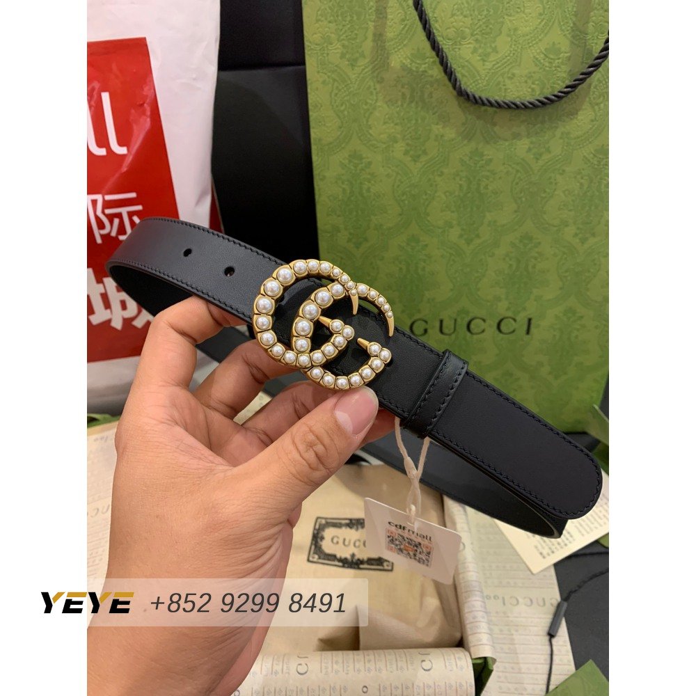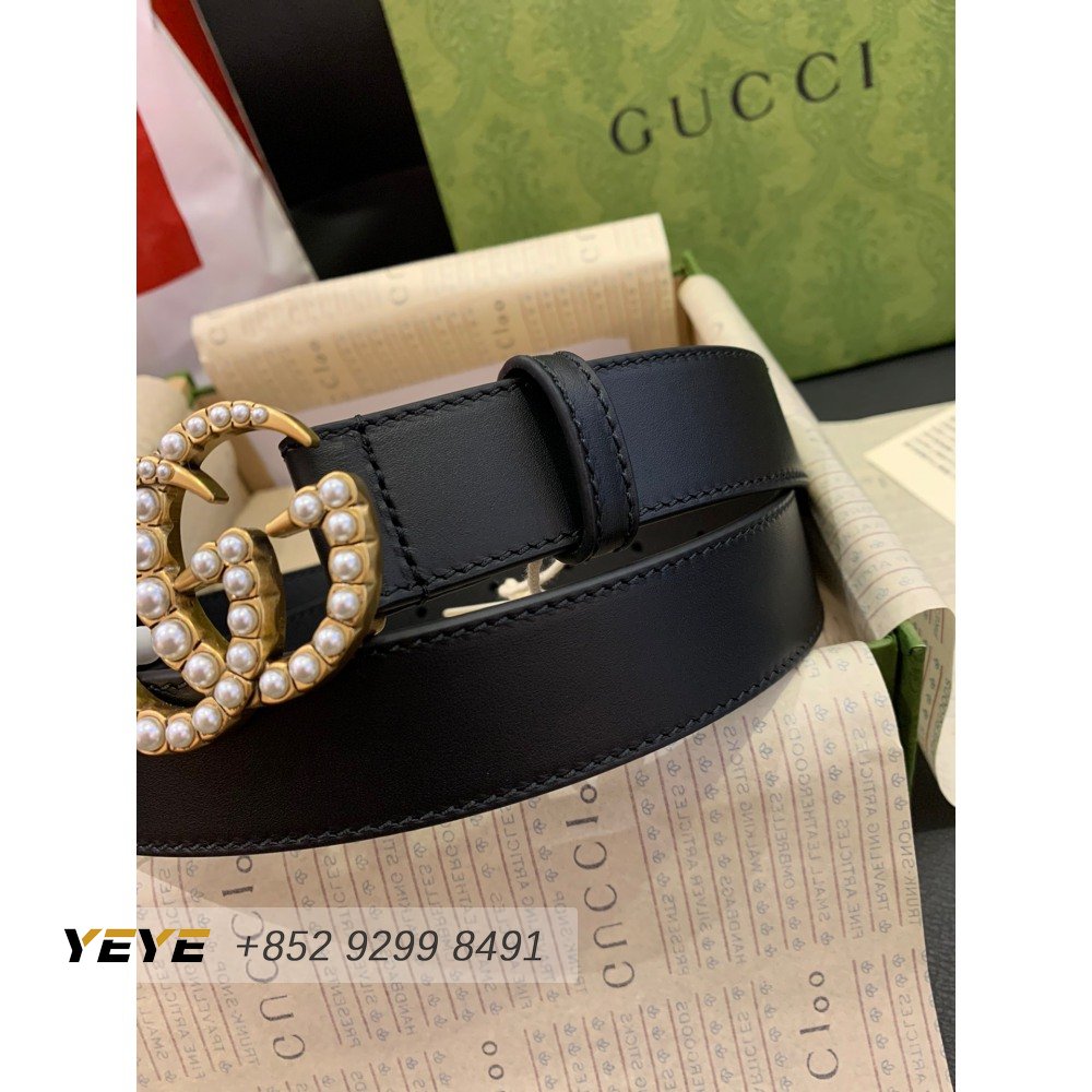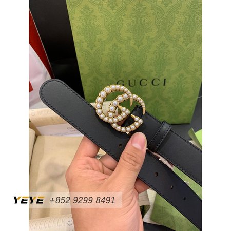Gucci Leather Belt With Pearl Double G Buckle