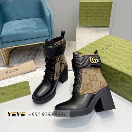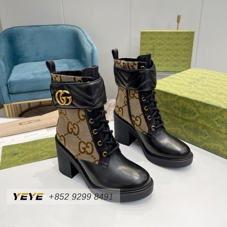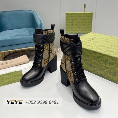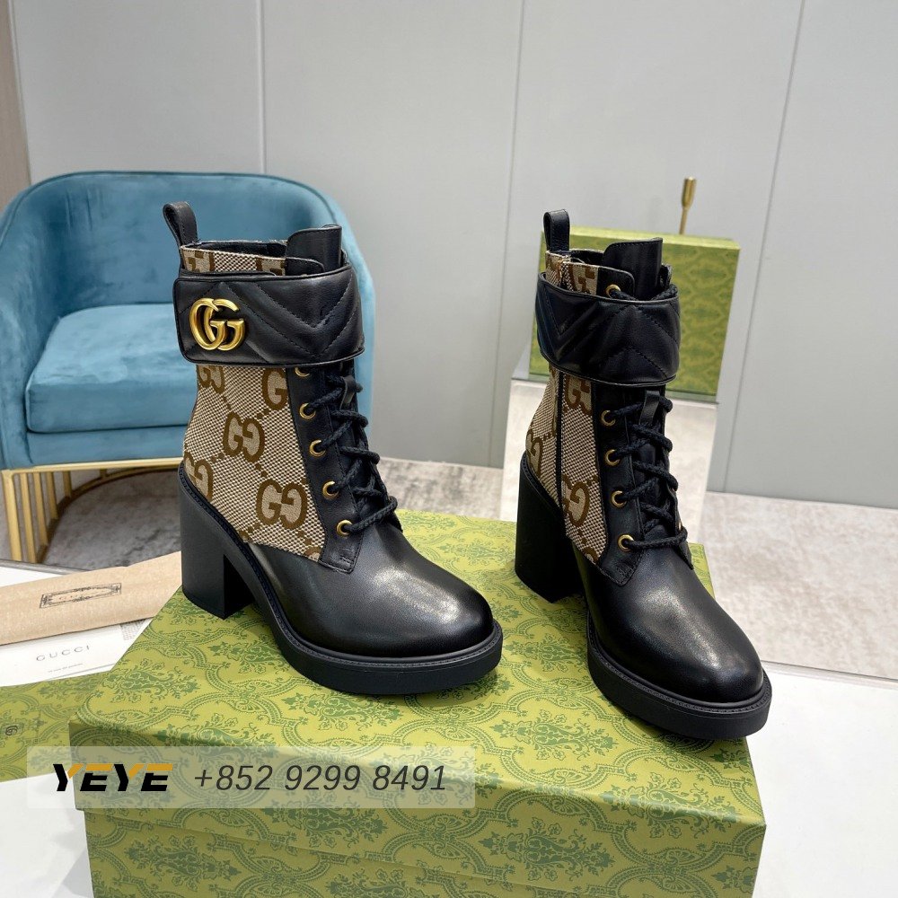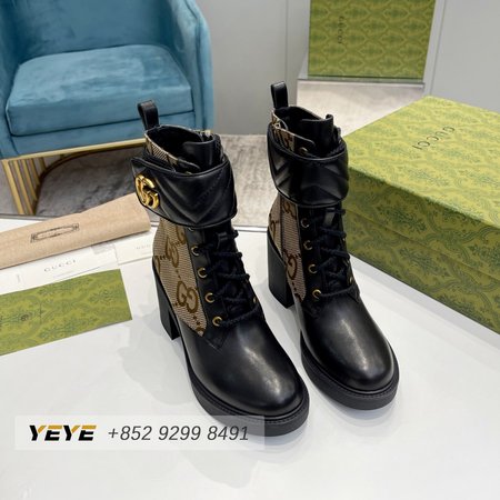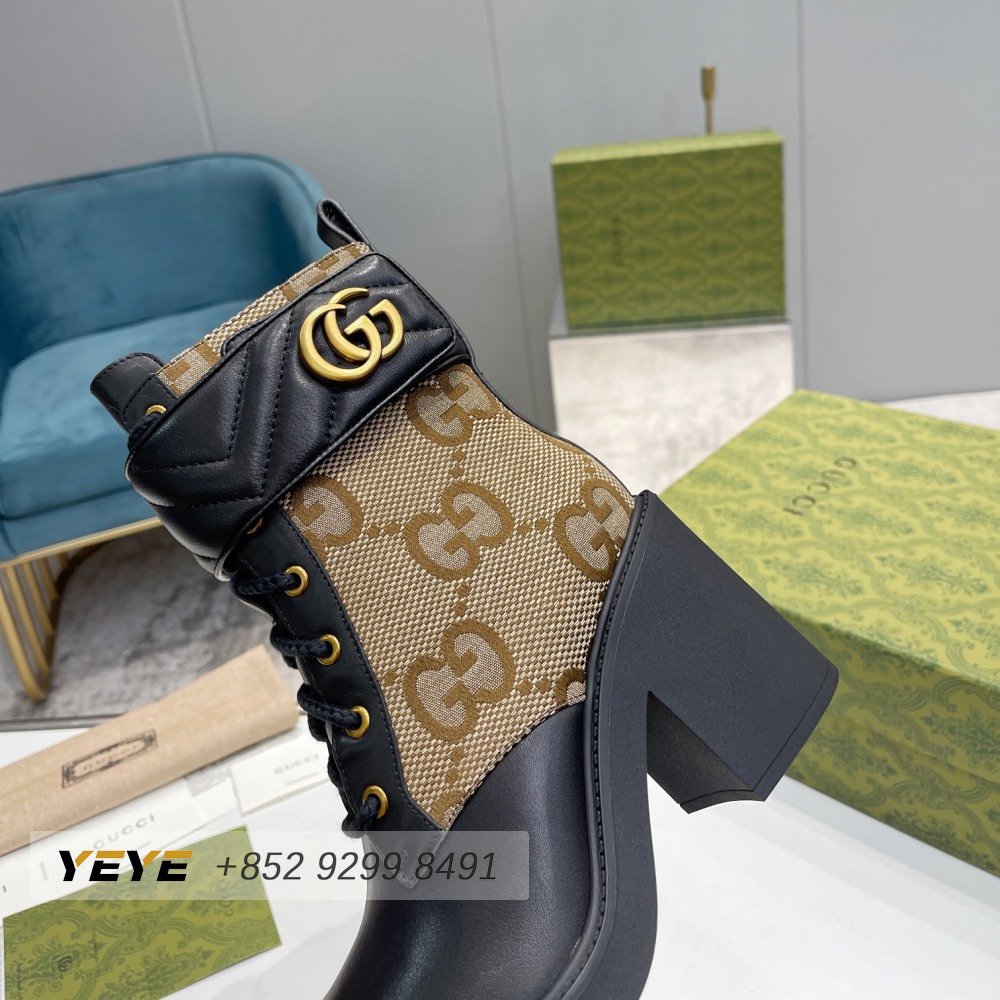 Gucci GG Matelasse Lace-Up Boot Black Leather 35-42