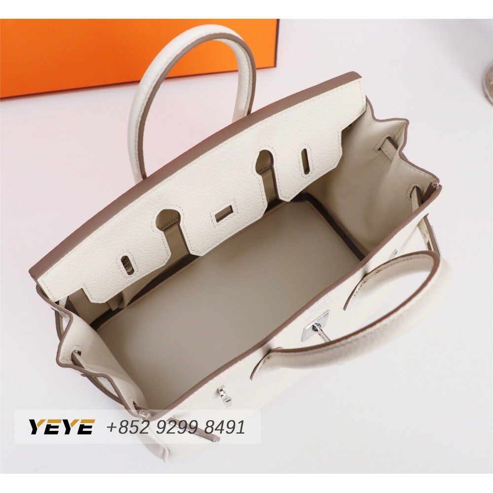 Hermes Craie Togo Birkin 25 Palladium Hardware