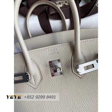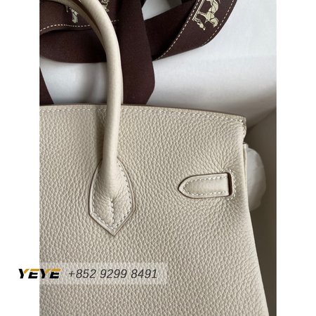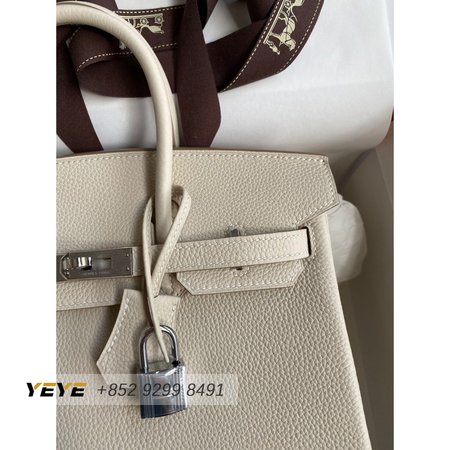 Hermes Craie Togo Birkin 25 Palladium Hardware
