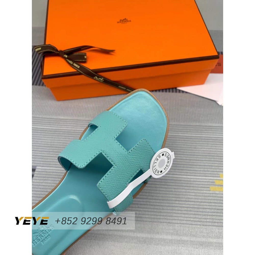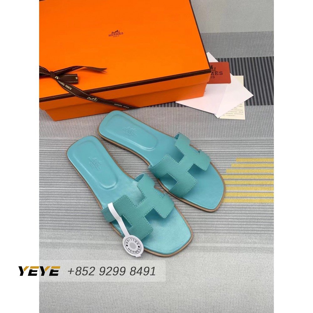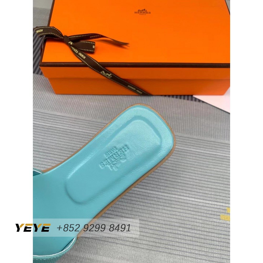 Hermes Oran Sandal Bleu Pinede Box Calfskin Leather