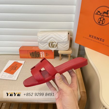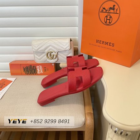 Hermes Oran Sandal Bleu Pinede Box Calfskin Leather