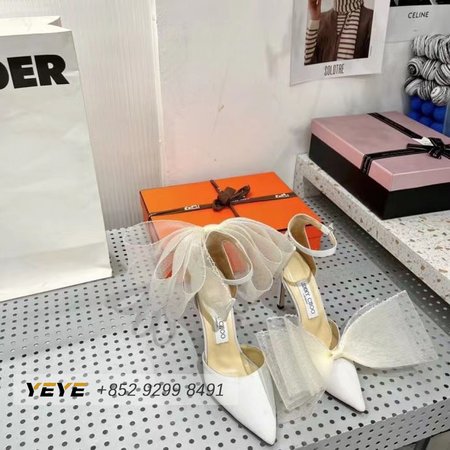 Jimmy Choo Averly 100 Latte Pumps with Asymmetric Grosgrain Mesh Fascinator Bows 35-39