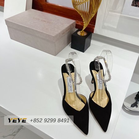 Jimmy Choo Saeda 100 Black Suede Pumps with Crystal Embellishment 35-39
