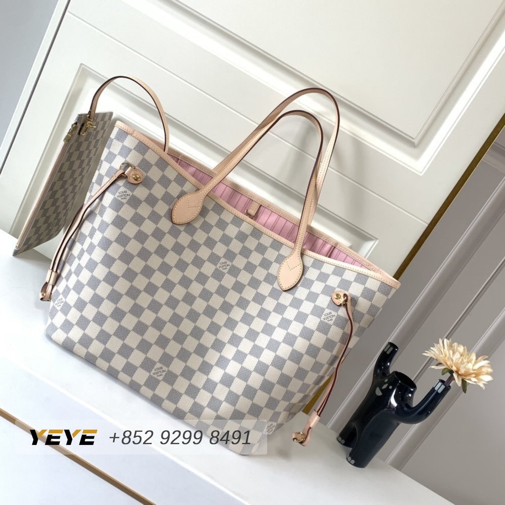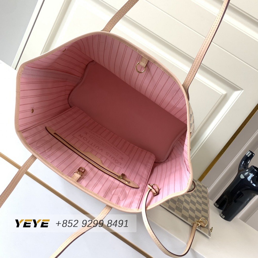 Neverfull Damier Azur GM Rose Ballerina Lining