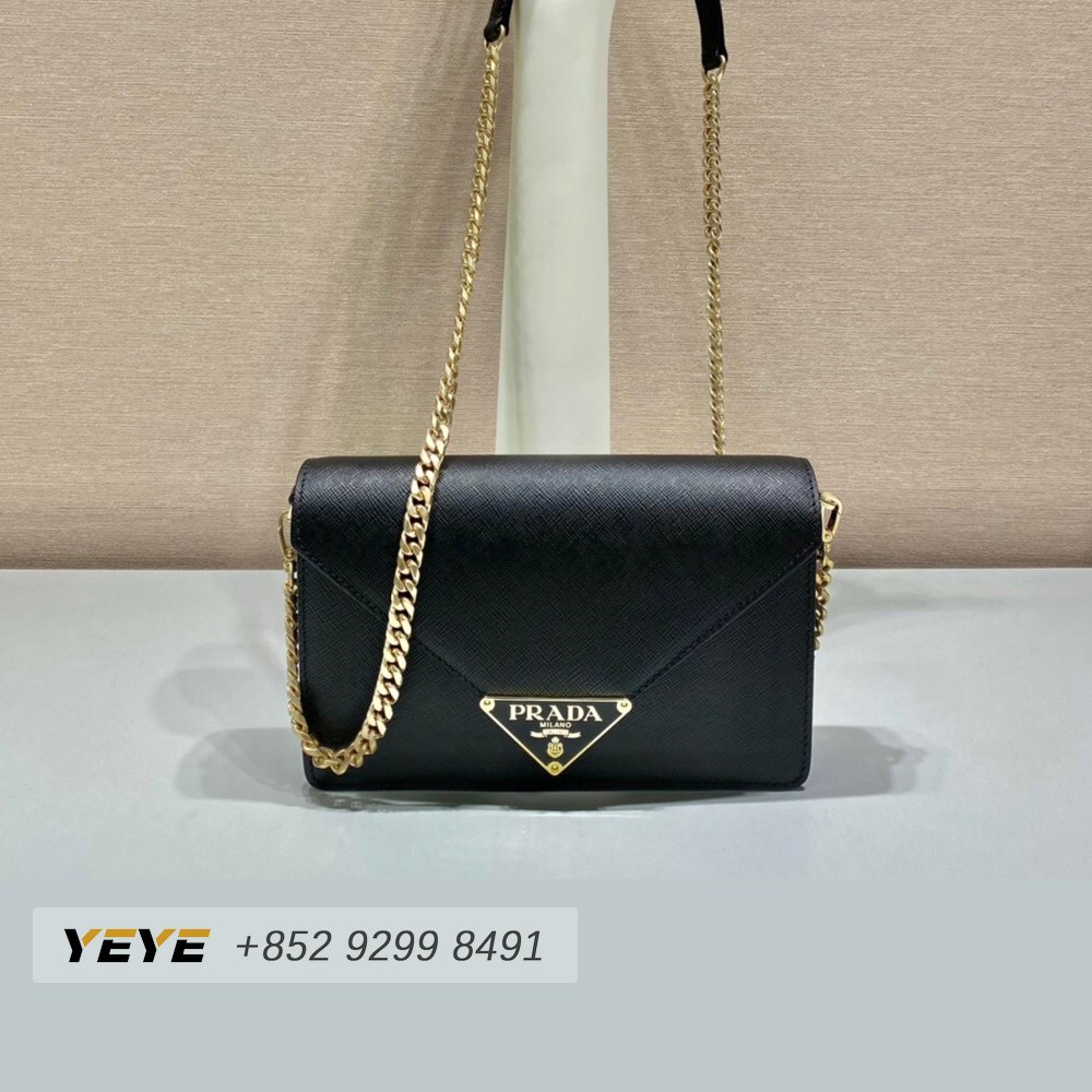 Prada Monochrome Saffiano And Leather Bag Black 1BD317