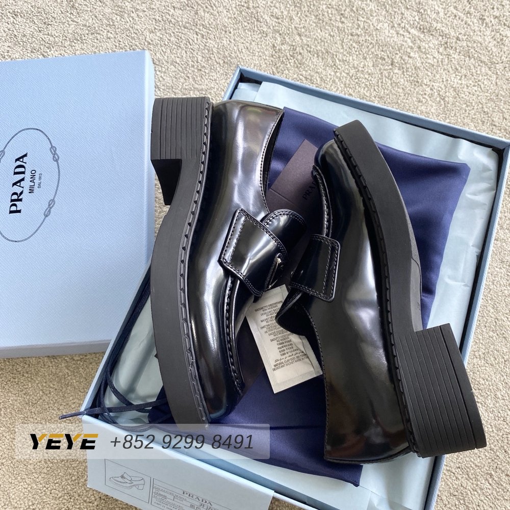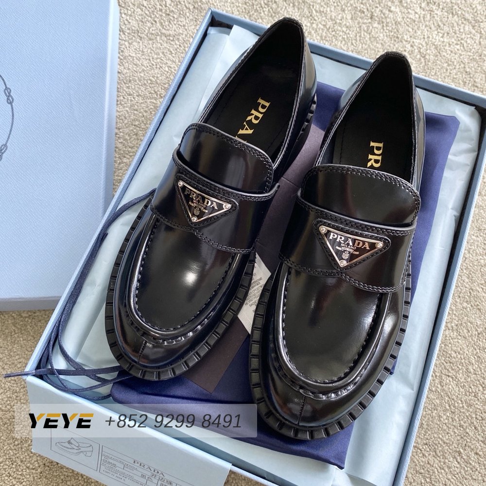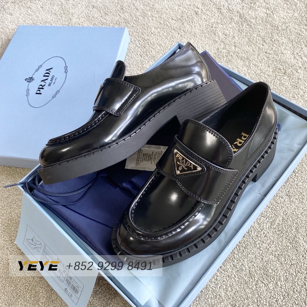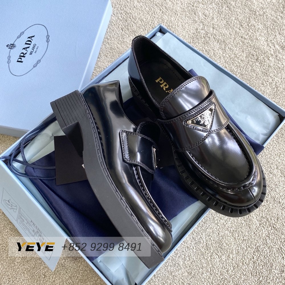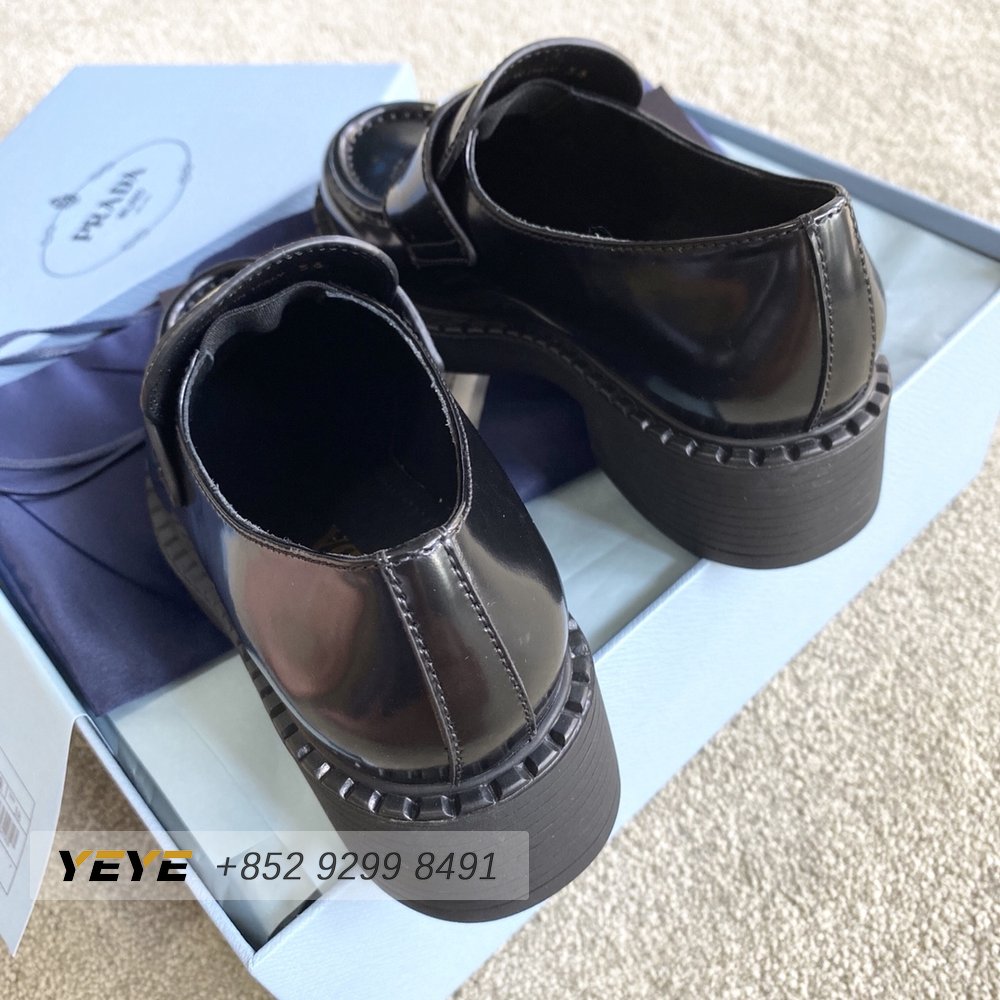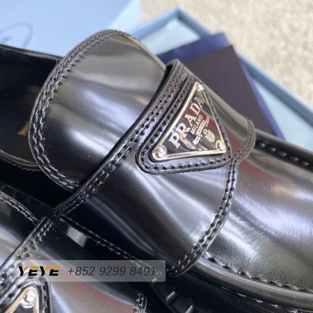 Prada Brushed Leather Monolith Loafers Black 35-39