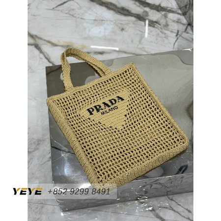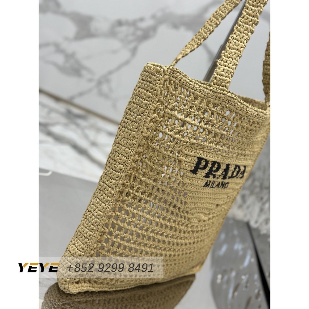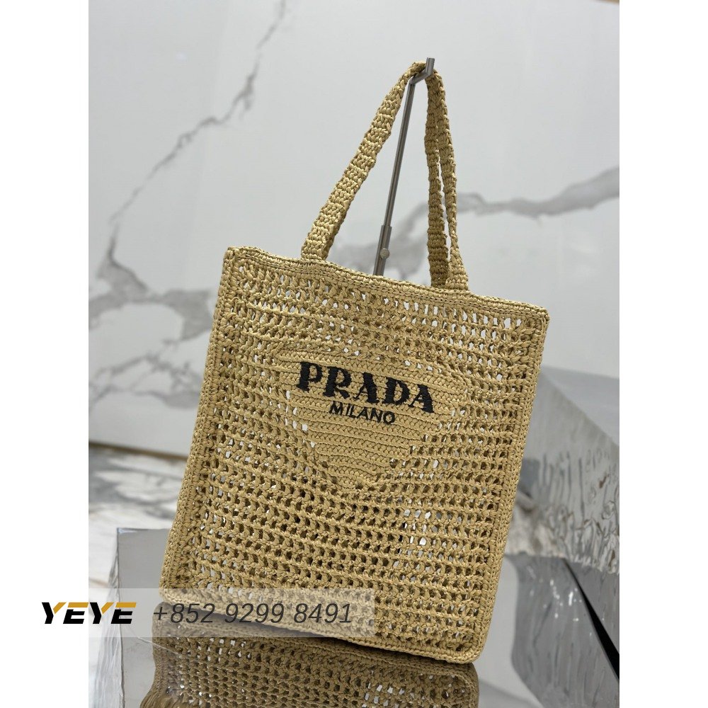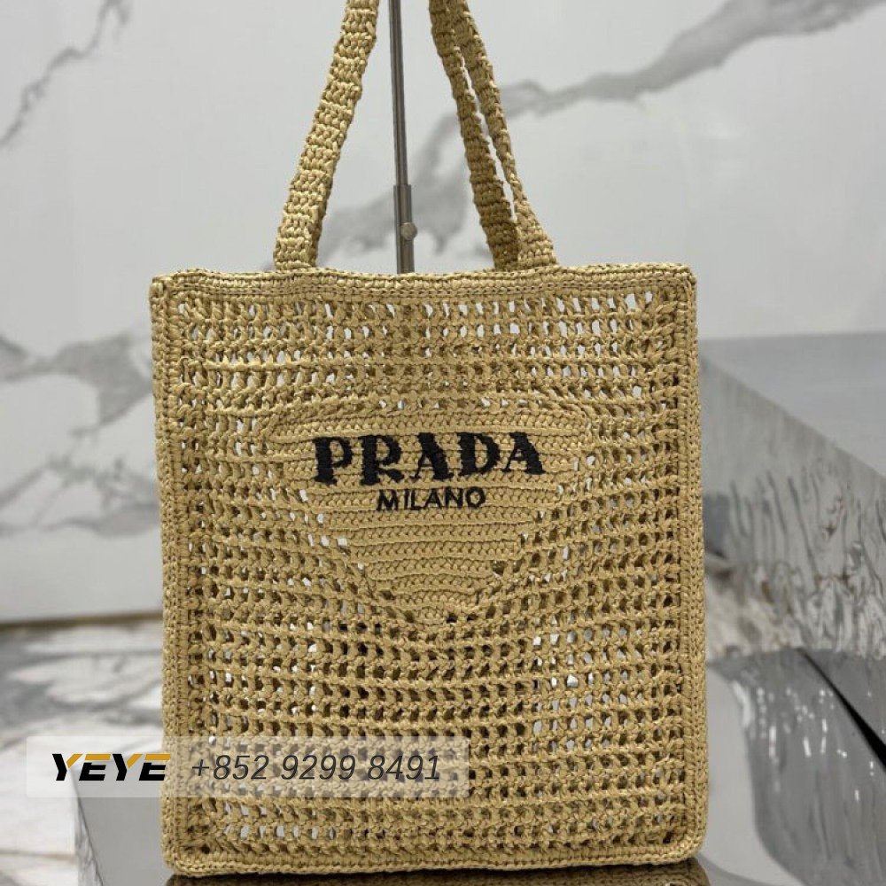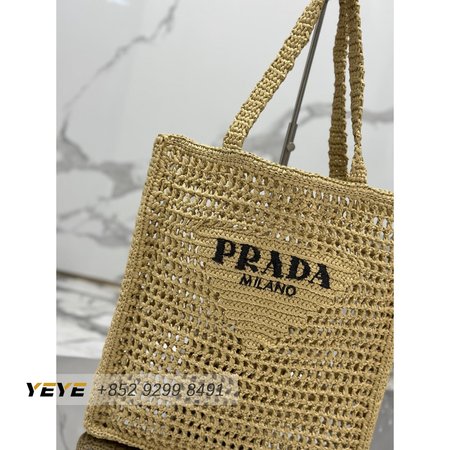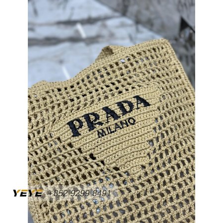 Prada Logo-Print Raffia Tote