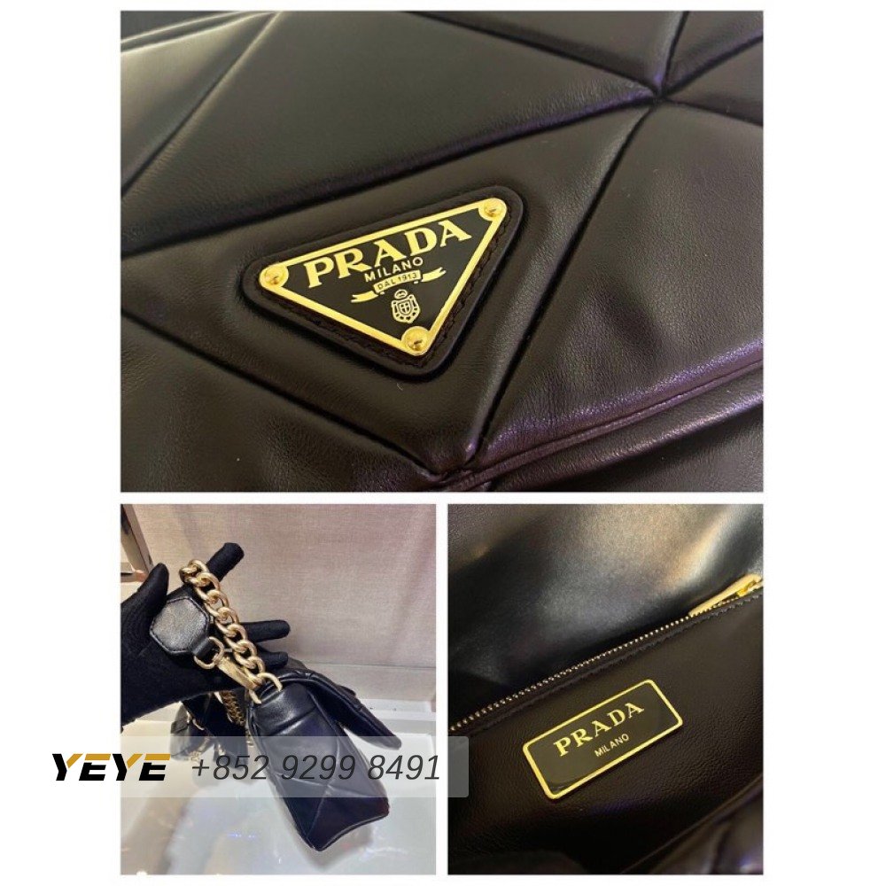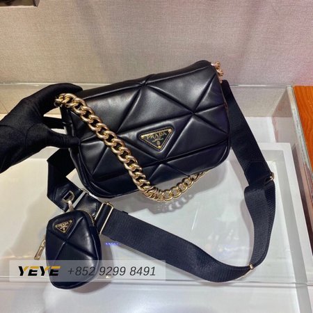 Prada System Nappa Patchwork Shoulder Bag Black 1BD292