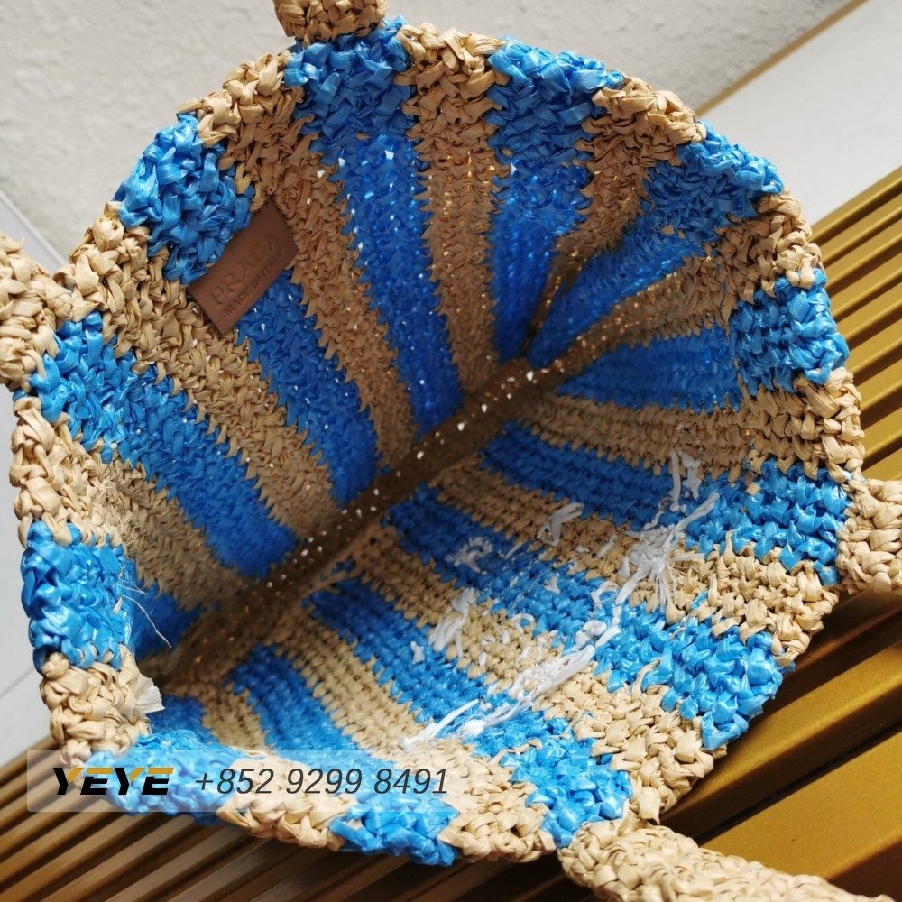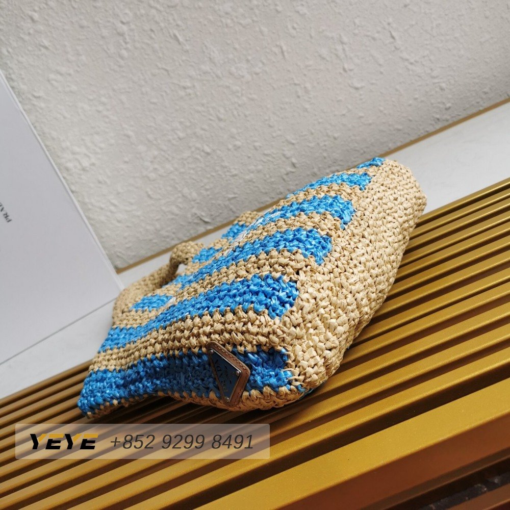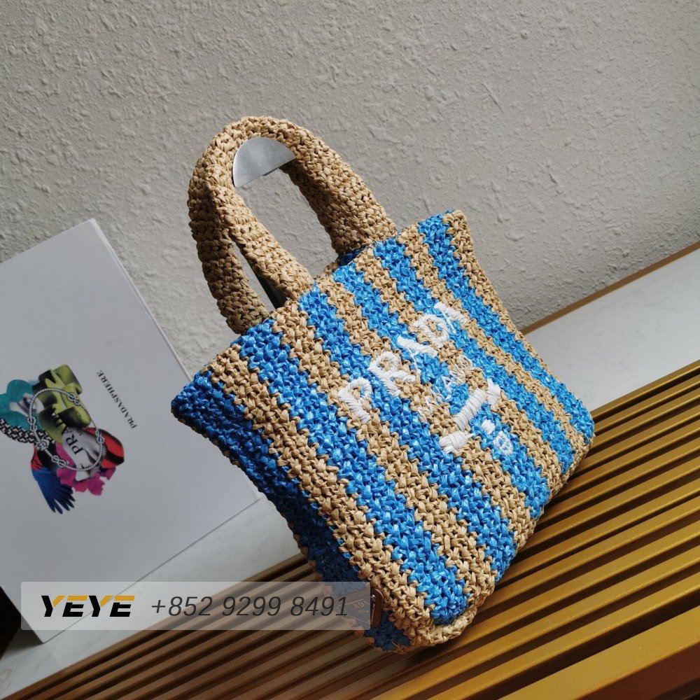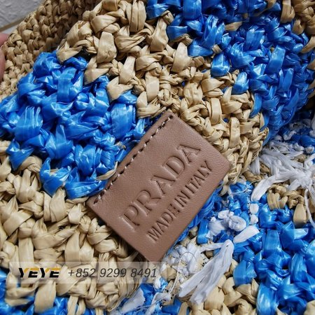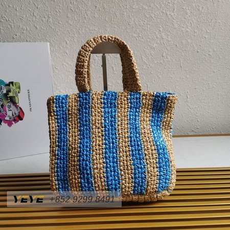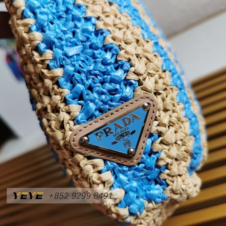 Prada Logo-Print Raffia Tote