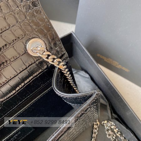Saint Laurent Calfskin Crocodile Embossed Medium Classic Monogram Kate Tassel Satchel Dark Brown