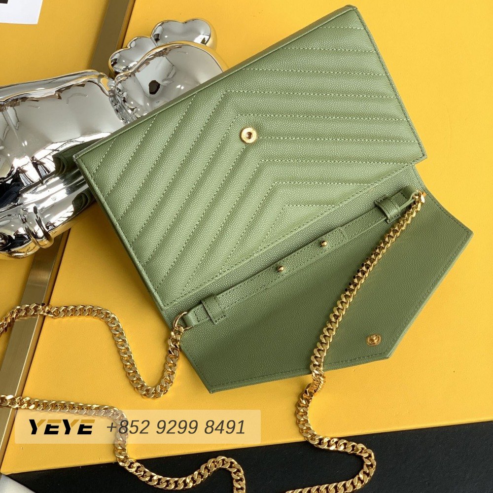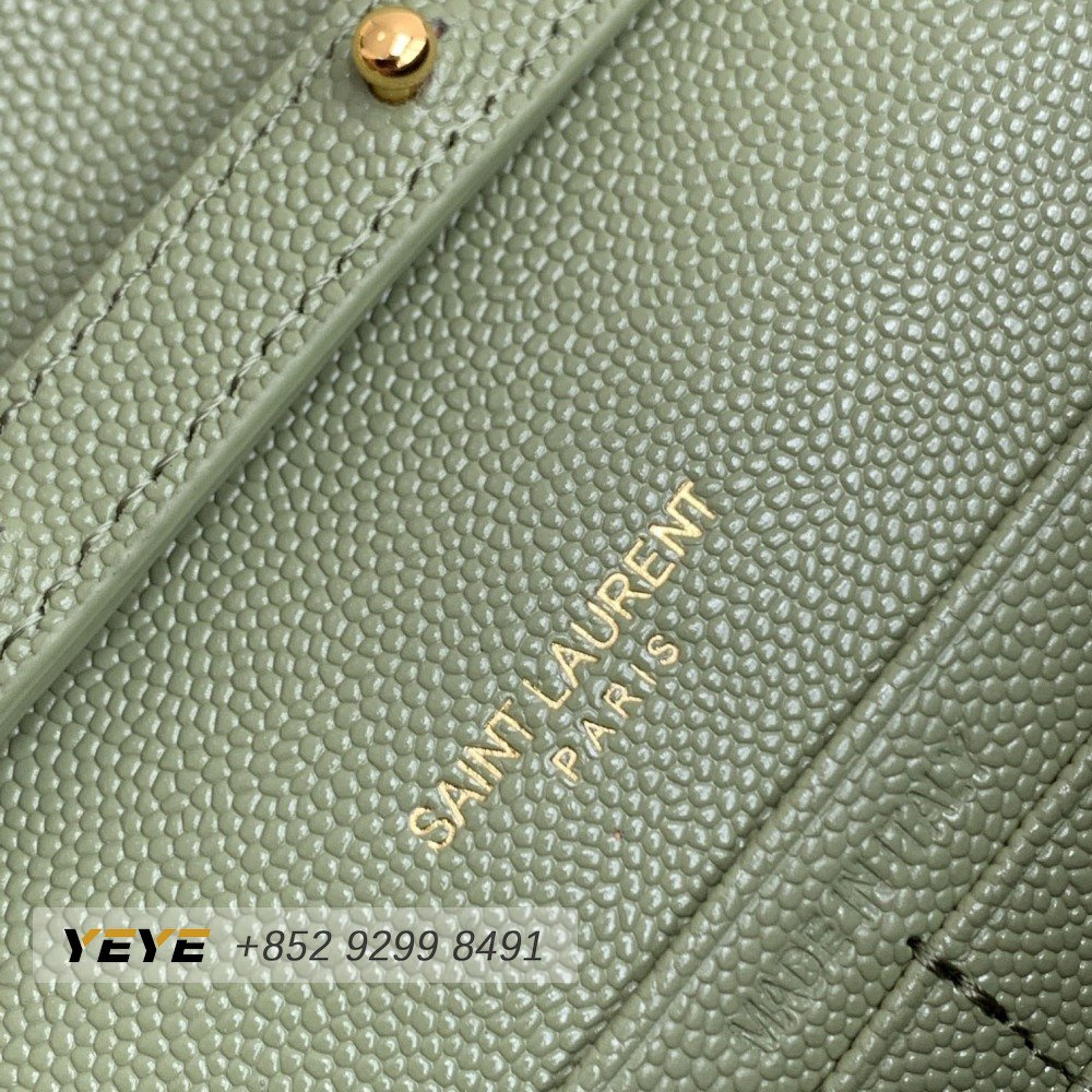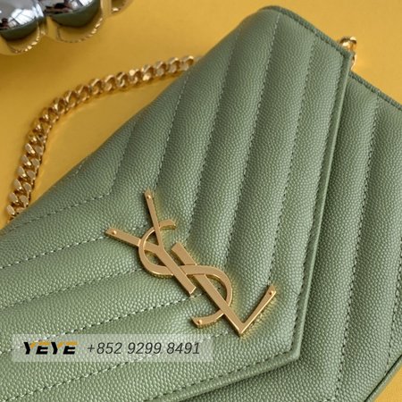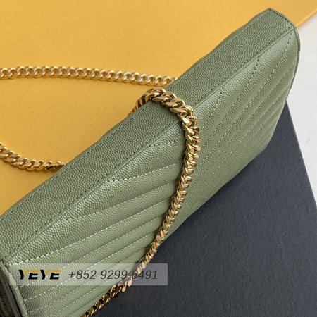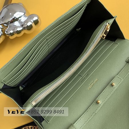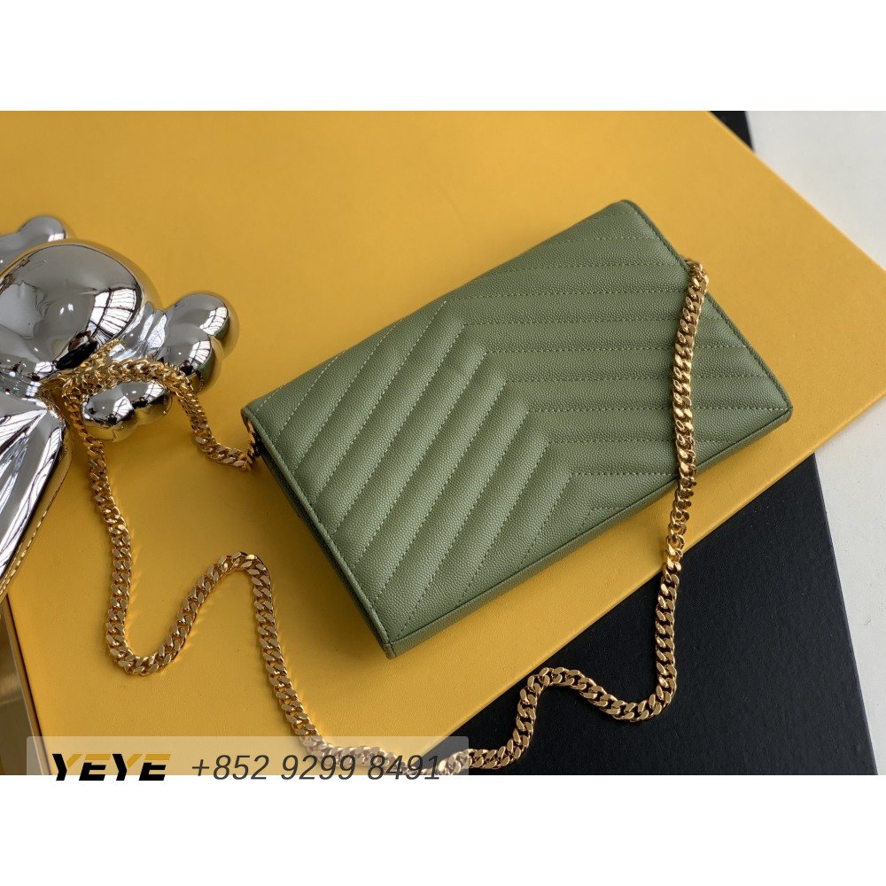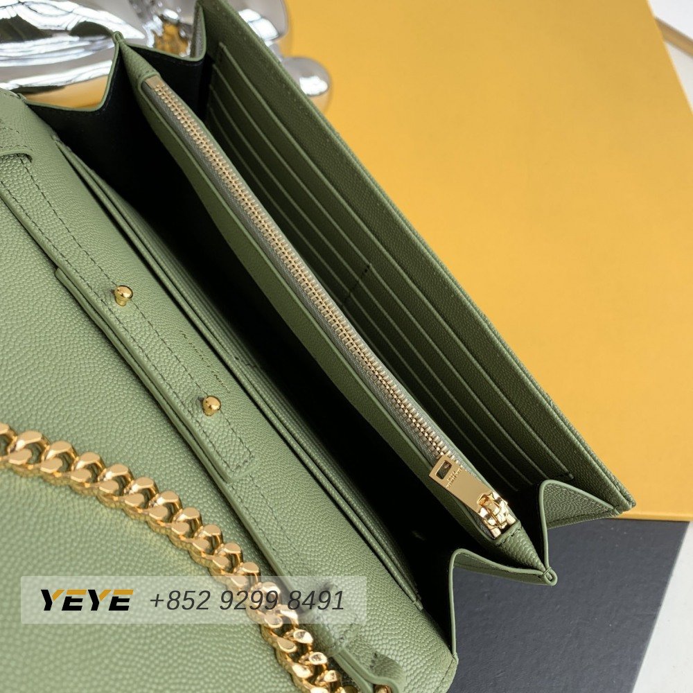 Saint Laurent Monogram Embossed Light Sage Leather Chain Wallet