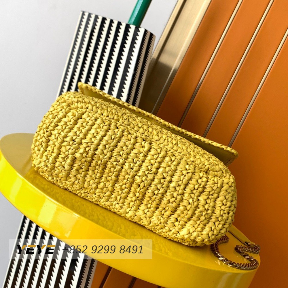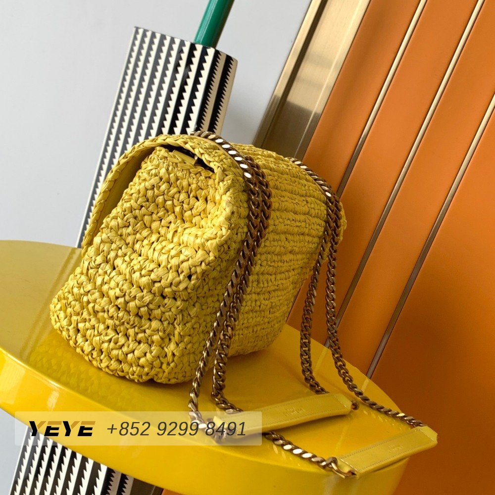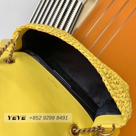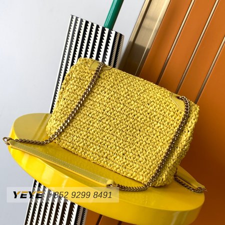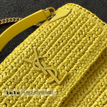 Saint Laurent Niki Raffia Logo Plaque Shoulder Bag