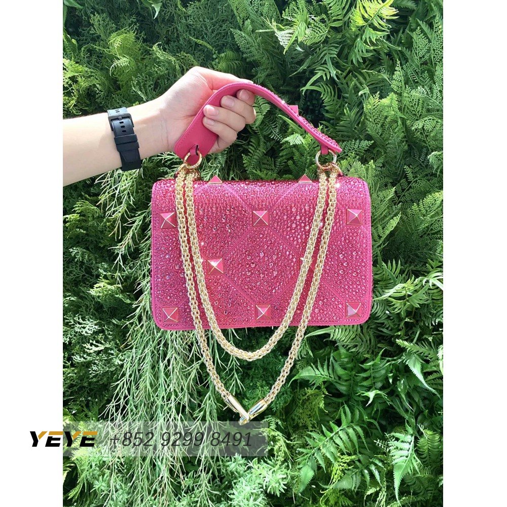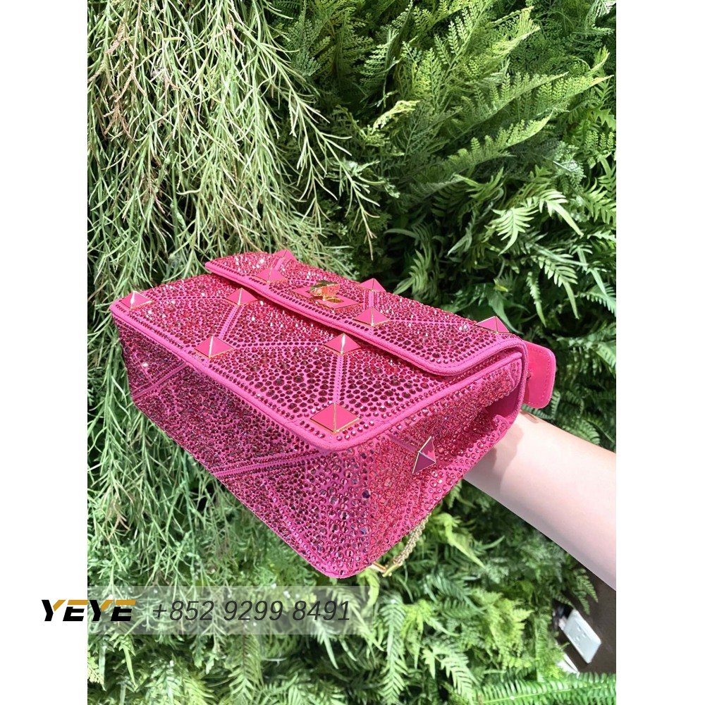 Valentino Medium Roman Stud The Shoulder Bag Chain With Sparkling Embroidery Pink