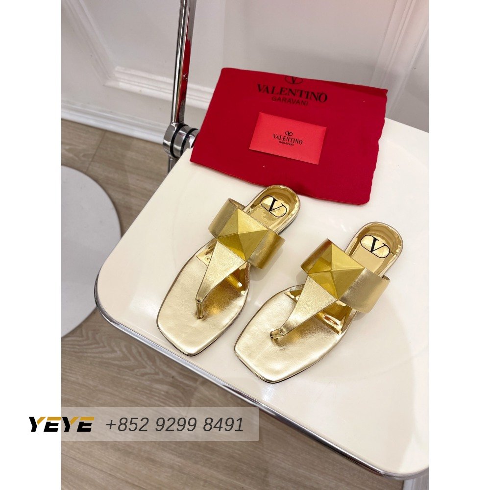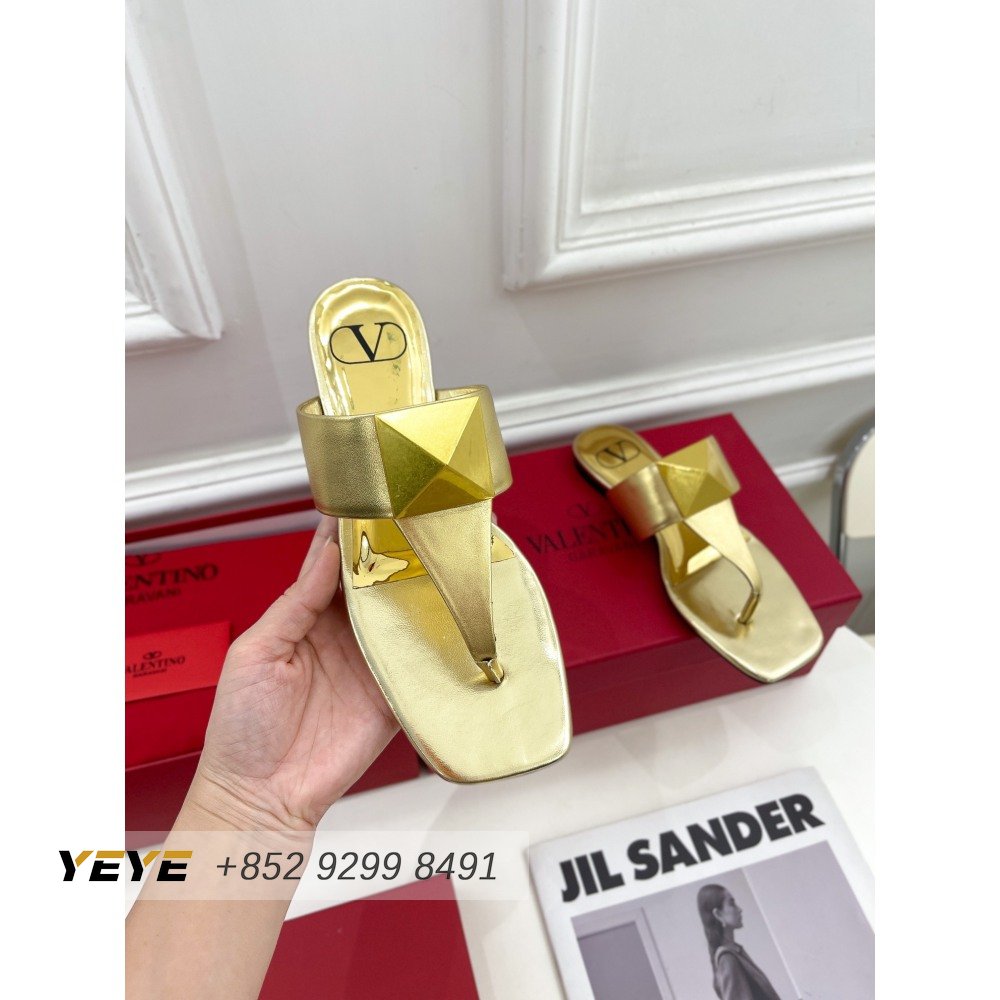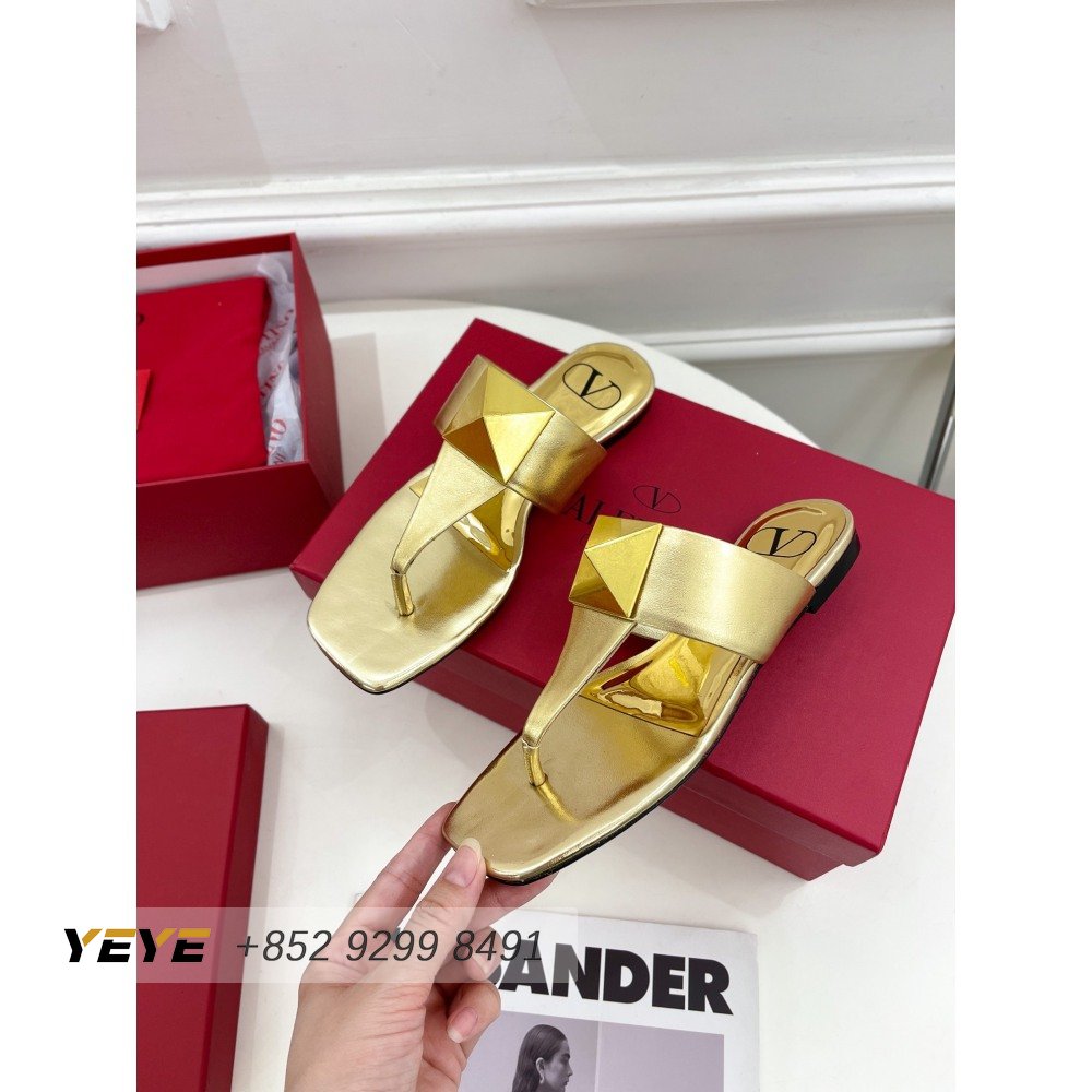 Valentino One Stud Metallic Nappa Flat Thong Sandal Antique Brass 35-39