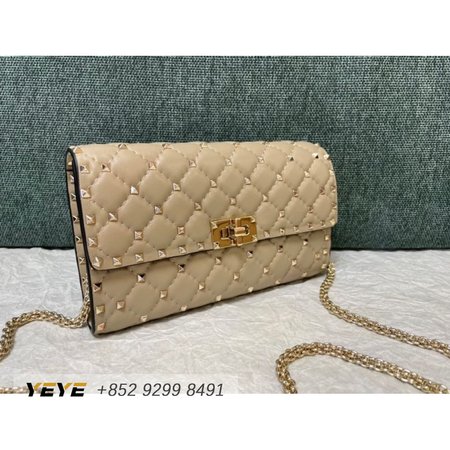 Valentino Rockstud Spike Nappa Leather Crossbody Clutch Bag Pouder WB0137NAP_P45