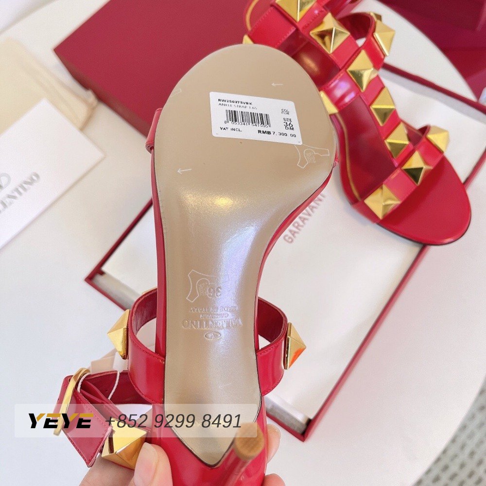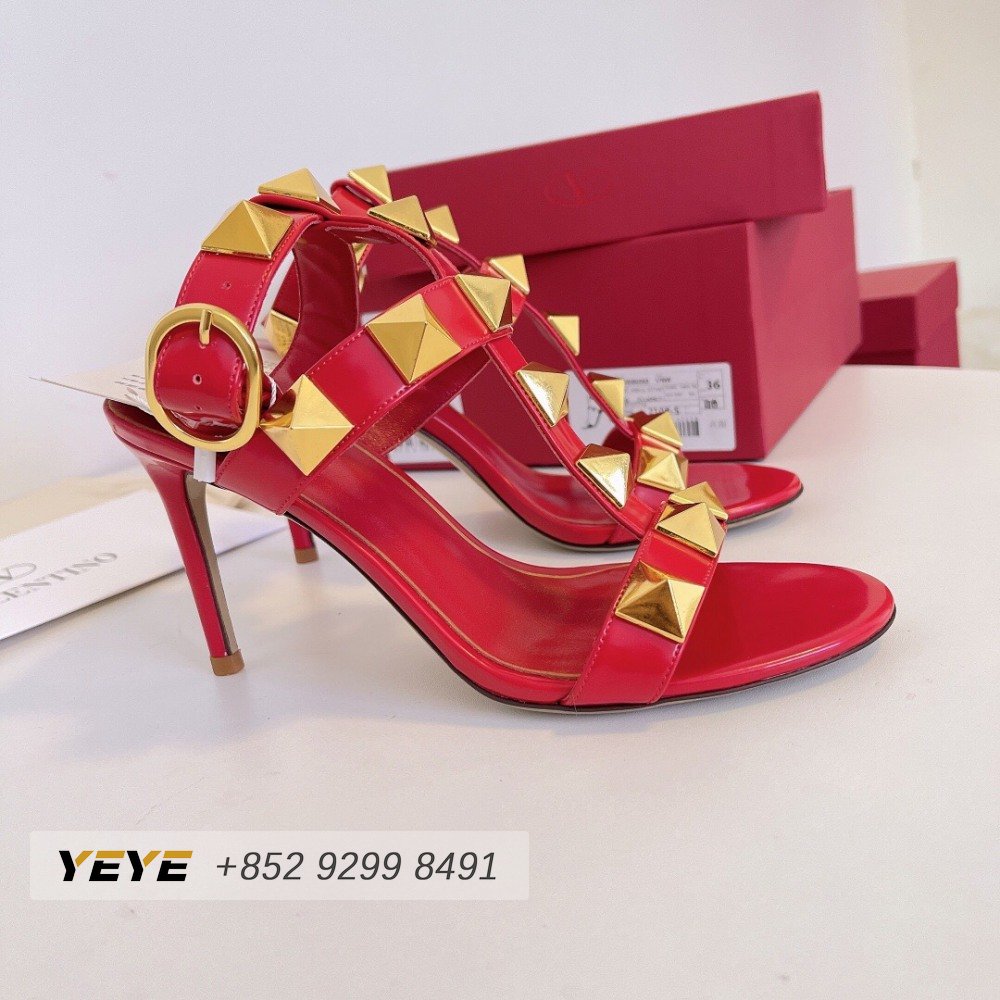 Valentino Roman Stud Calfskin Sandal 100mm Red 35-39