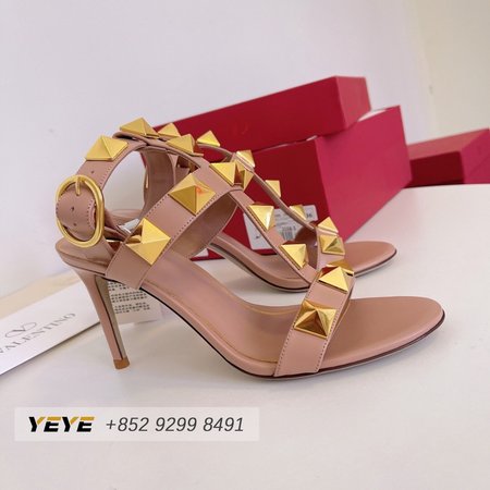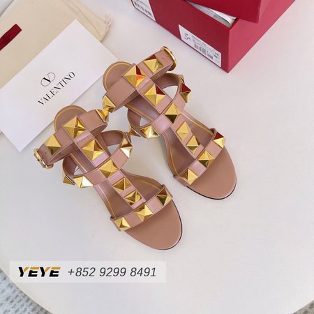 Valentino Roman Stud Calfskin Sandal 100mm Rose Cannelle 35-39