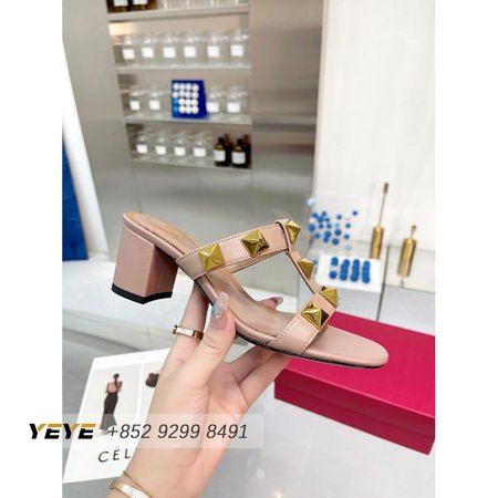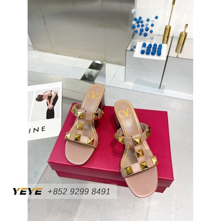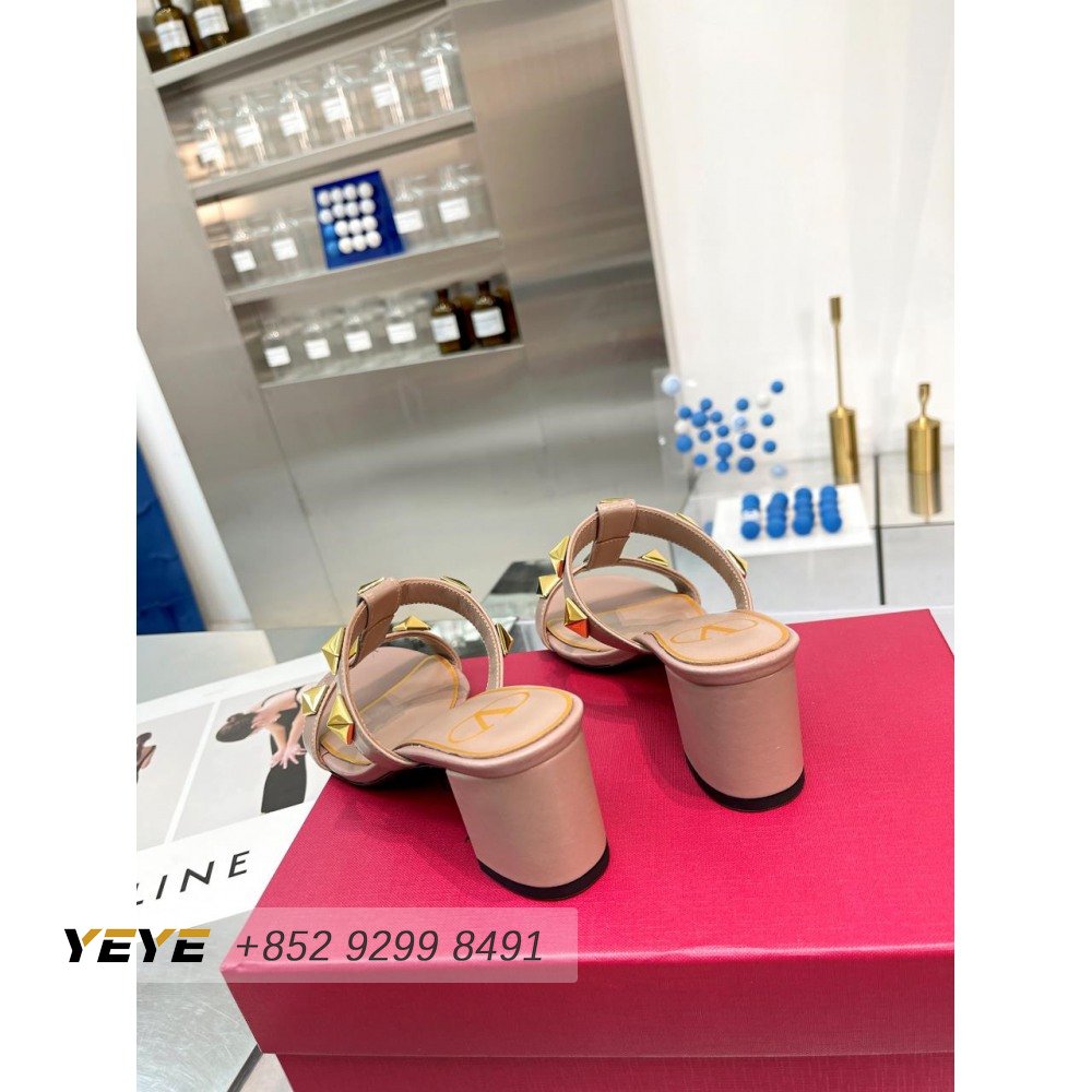 Valentino Roman Stud Calfskin Slide Sandal 60mm Rose Cannelle 35-41