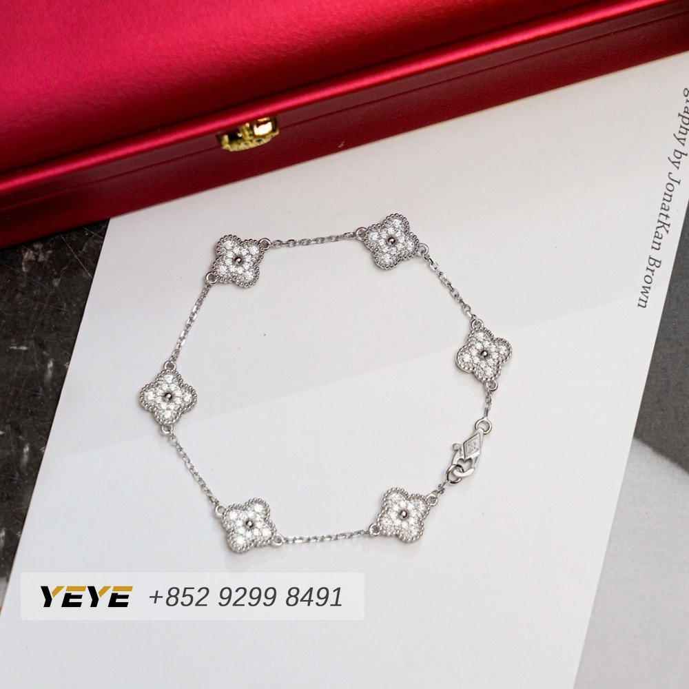 Van Cleef & Arpels 18k White Gold Diamond Pure Alhambra Bracelet